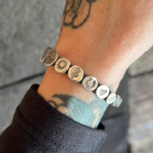 Ready To ShipStamped Concho Leather Slide Bracelet