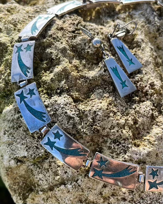 Vintage Inlay Necklace and Earring Set