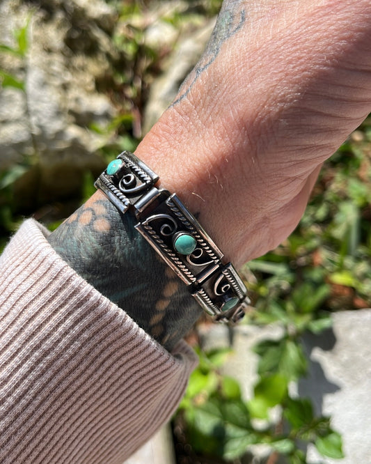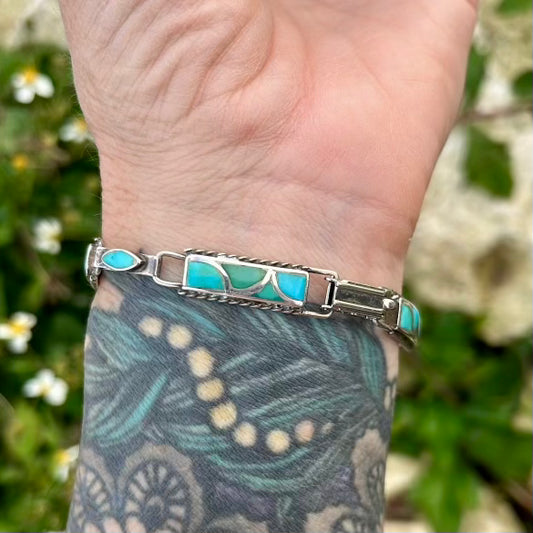 Vintage Turquoise Inlay Link Bracelet