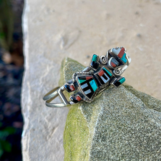 Vintage Zuni Inlay Kachina Dancer Cuff