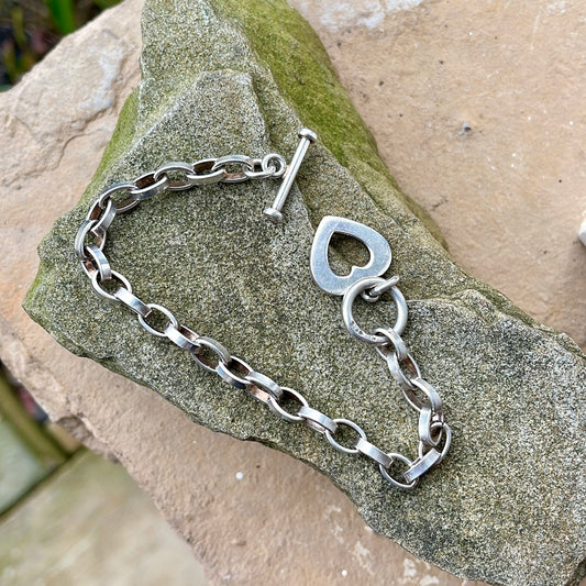 Vintage Heart Charm Toggle Bracelet