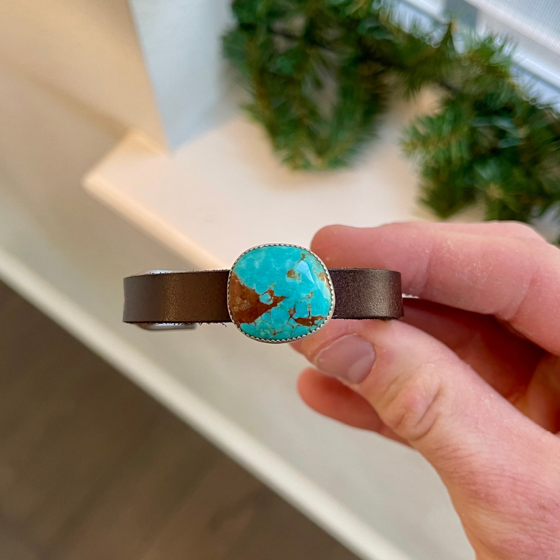 Turquoise Leather Slide Bracelet