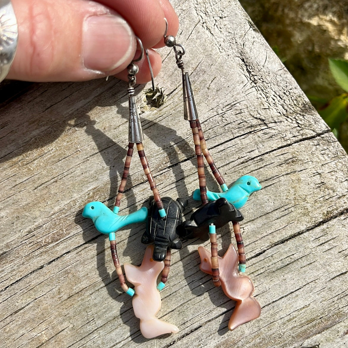 - Turquoise, mother of pearl and jet