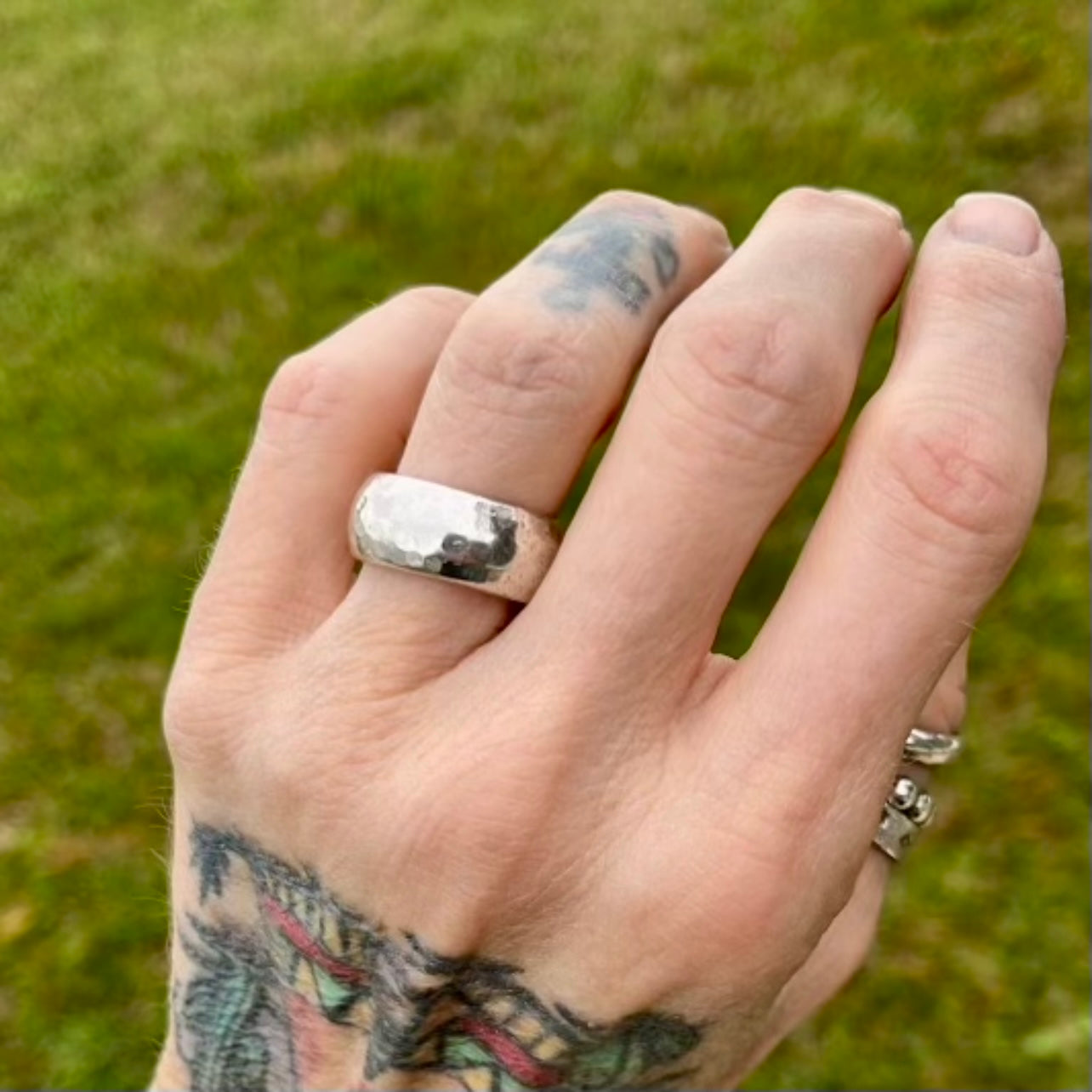 Vintage Solid Hammered Style Ring - Size 6.75
